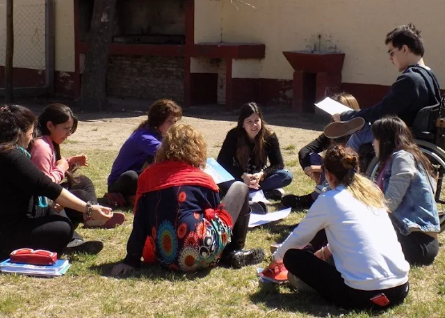común con el resto de los compañeros.| En grupos y bajo un hermoso sol, conversamos sobre las distintas organizaciones en discapacidad. |